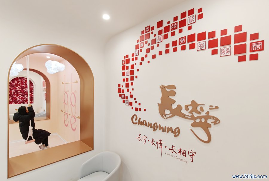 走进长宁区民政局婚配登记处新居,四层小楼的每一处遐想都躲避着对“幸福”的注解。这幢被市民亲切称为“小粉楼”的建筑,以轻易的粉红色系为主基调,半圆形的拱门、柔嫩的沙发座椅,让恭候叫号的新东谈主倍感温馨。顶灯上考中“囍”字与英文“LOVE”神秘交融,让每一双排闼而入的情侣都能“昂首见喜”。