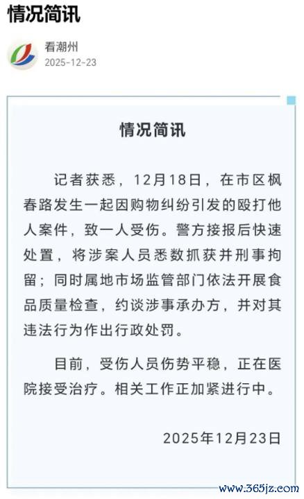 12月23日,一段“举报商贩用猪肉冒充牛肉售卖反遭围殴”的视频在辘集热传,激发公众对食物安全维权与暴力遏止作为的热烈贵重。 据潮州市有计划通报,该起殴打他东说念主案件发生于12月18日市区枫春路,因购物纠纷激发。警方接报后飞速开展护士职责,已将打东说念主者一起持获并照章刑事拘留。与此同期,属地市集监管部门同步运转作为,对涉事商家开展食物性量查抄,约谈涉事经办方,并依据有计划法律限定作出行政处罚。 现在,受伤的林先生正在病院继承诊疗,伤势平安,案件后续拜谒及有计划护士职责正在加......查看更多